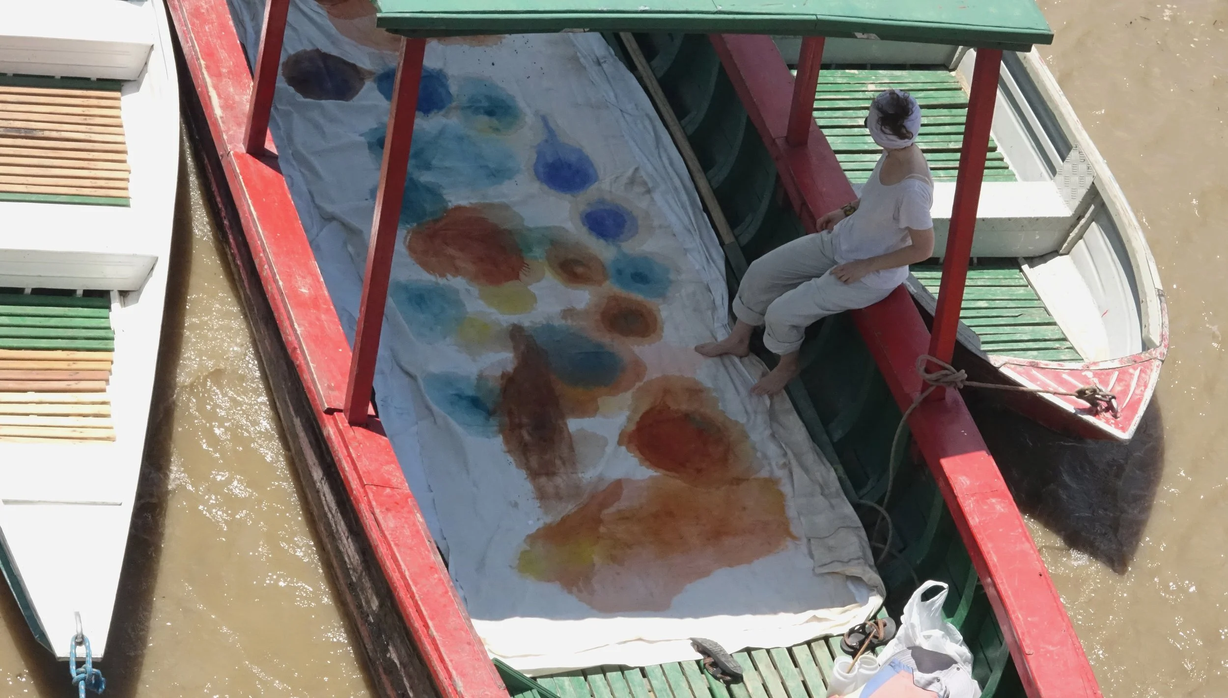 Margarita GF pintando en un viaje en el Amazonas.